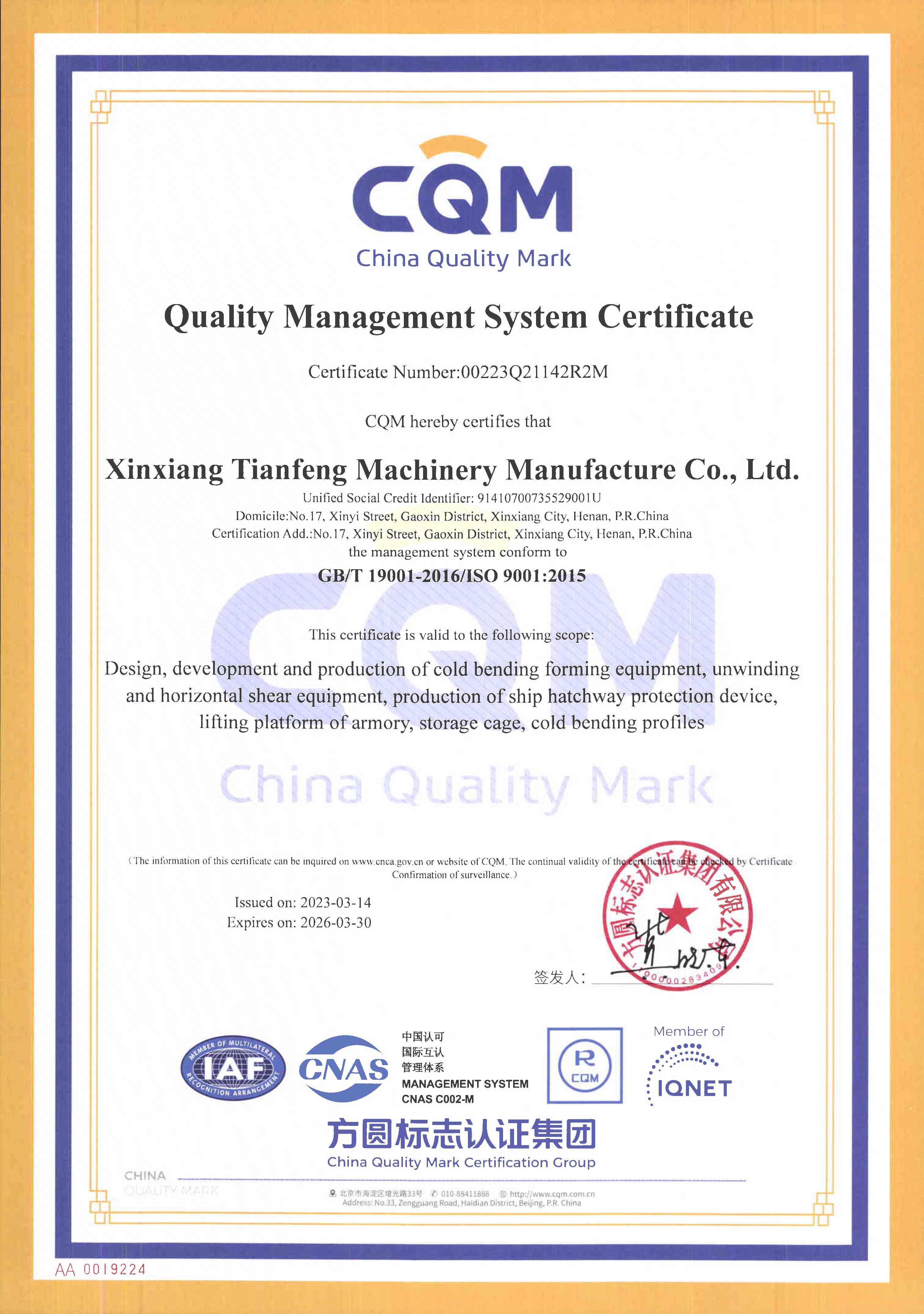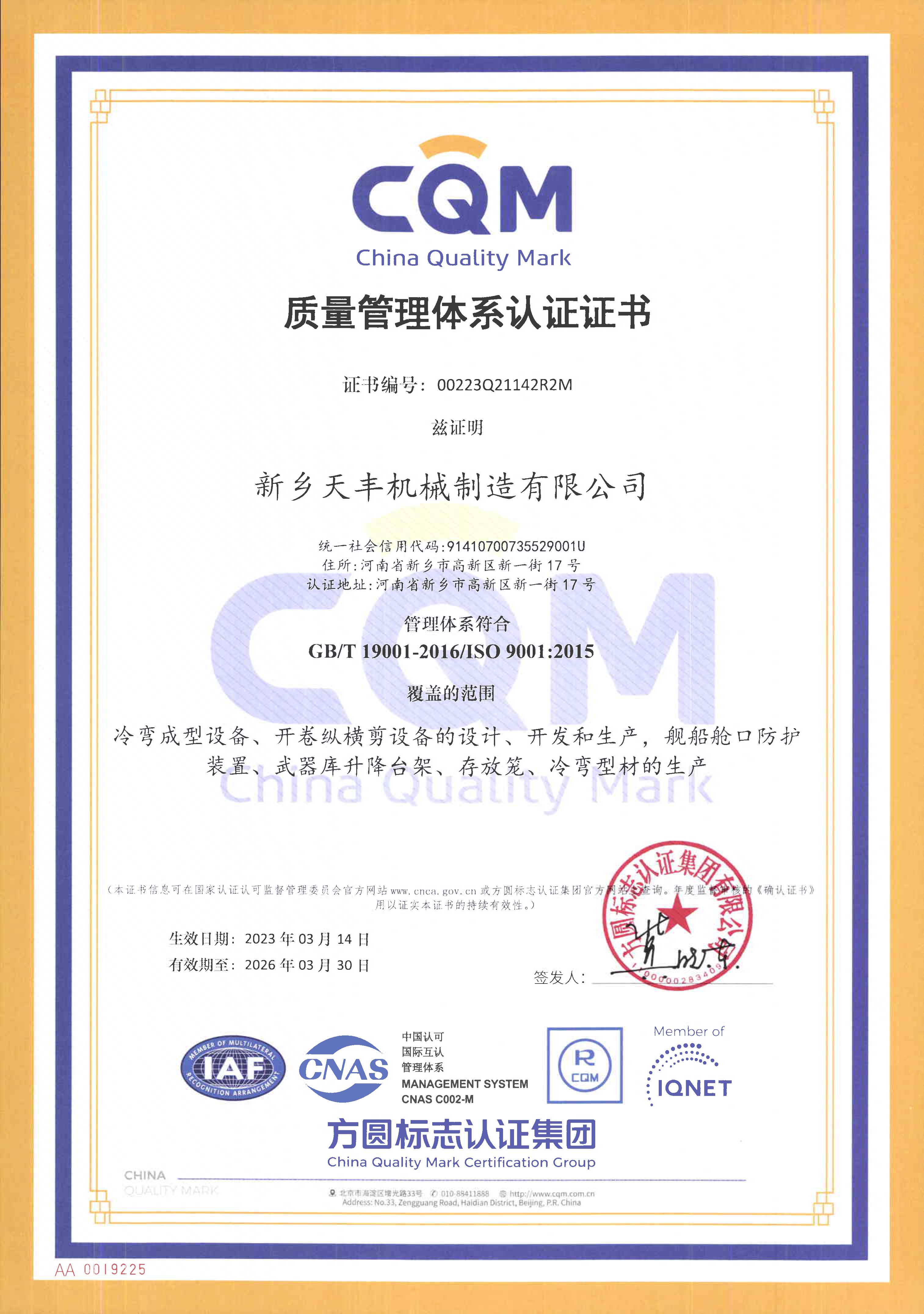 新鄉(xiāng)天豐機械制造有限公司始創(chuàng)于1993年,隸屬于天豐綠色裝配集團,是專業(yè)的冷彎成型方案提供商,是中國冷彎協(xié)會副理事長單位、行業(yè)標(biāo)準(zhǔn)起草單位、國家高新技術(shù)企業(yè)、河南省制造業(yè)信息化重點示范企業(yè)、河南省重合同守信譽企業(yè),并取得多項自主知識產(chǎn)權(quán),通過ISO9001質(zhì)量體系認(rèn)證,客戶遍布世界多個國家和地區(qū)。