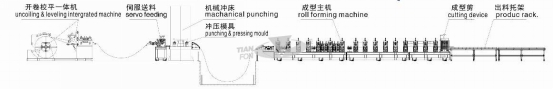 開(kāi)卷→校平伺服送料→沖孔→成型→切斷→出料